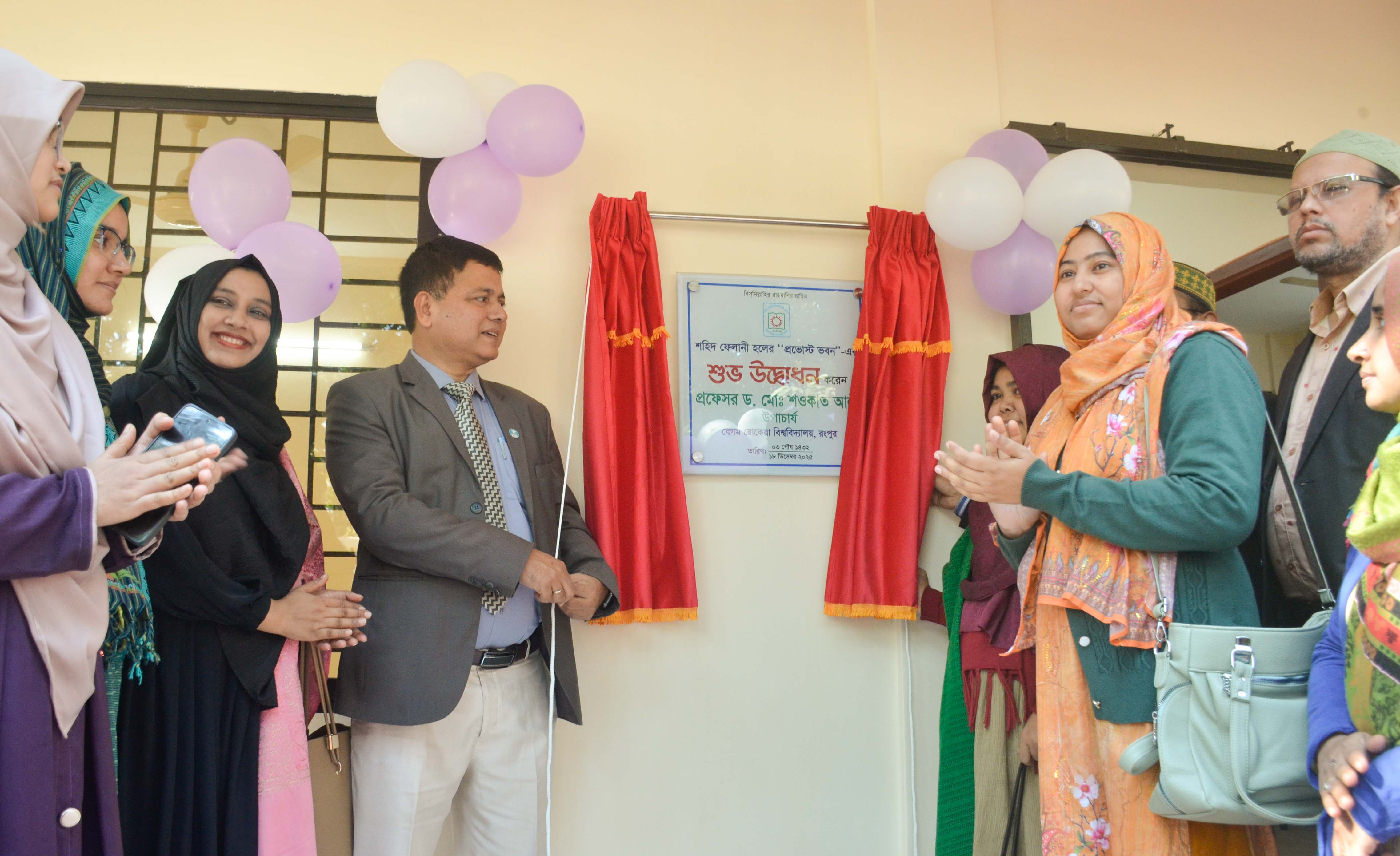 বেগম রোকেয়া বিশ্ববিদ্যালয়, রংপুর-এর শহিদ ফেলানী হলের প্রভোস্ট ভবনের উদ্বোধন করা হয়েছে। বৃহস্পতিবার (১৮ ডিসেম্বর ২০২৫) সকালে শহিদ ফেলানী হলের প্রভোস্ট ভবনের আনুষ্ঠানিক উদ্বোধন করেন বিশ্ববিদ্যালয়ের উপাচার্য প্রফেসর ড. মোঃ শওকাত আলী। এ সময় শহিদ ফেলানী হলের প্রভোস্ট প্রফেসর ড. মোছাঃ সিফাত রুমানা, আইকিউএসি পরিচালক প্রফেসর ড. মোঃ তাজুল ইসলাম, রেজিস্ট্রার ড. মোঃ হারুন-অর রশিদ, সহকারী হল প্রভোস্টবৃন্দ, প্রকৌশল ও প্রশাসনিক কর্মকর্তাবৃন্দসহ সংশ্লিষ্টরা উপস্থিত ছিলেন।